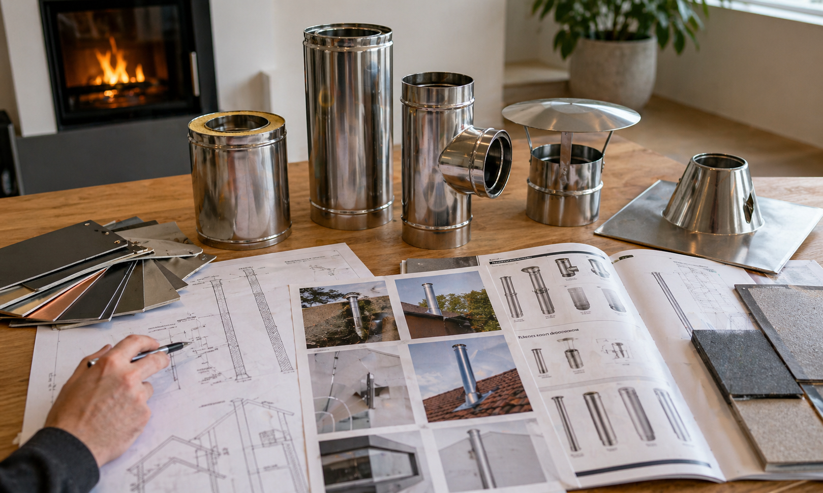 Gemeinsam wählen wir das passende Schornsteinsystem, die Ausführung, benötigte Bauteile und die gewünschte Optik.